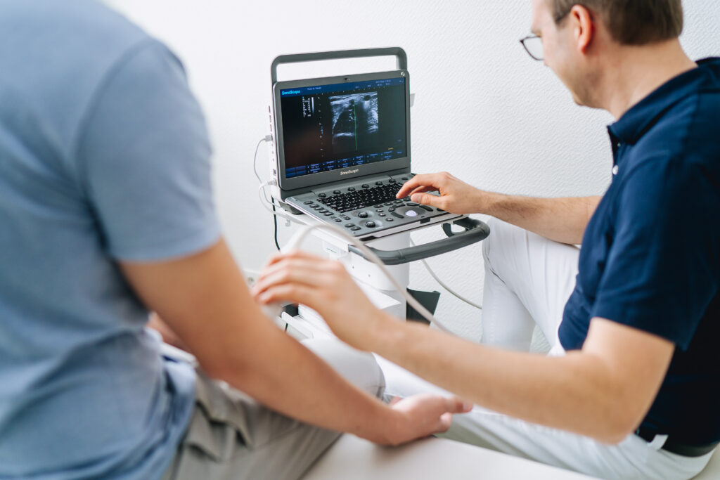 Der Ultraschall (Sonographie) ist ein wichtiges diagnostisches Verfahren in der Orthopädie. Mit seiner Hilfe lassen sich Weichteilstrukturen wie Muskeln, Sehnen, Bänder und Gelenke in Echtzeit und ohne Strahlenbelastung untersuchen. Dadurch ist die Sonographie eine schonende und gleichzeitig äußerst präzise Methode zur Beurteilung orthopädischer Beschwerden.